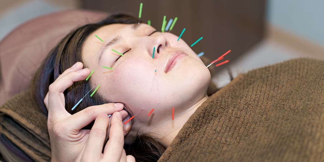 鍼灸は美容に対して高い効果が期待でき、お顔のたるみが気になる方にはリフトアップをしたり、ターンオーバーのサイクルを整えたり、肌を美しくしたい方向けの美容鍼コースをご用意しています。